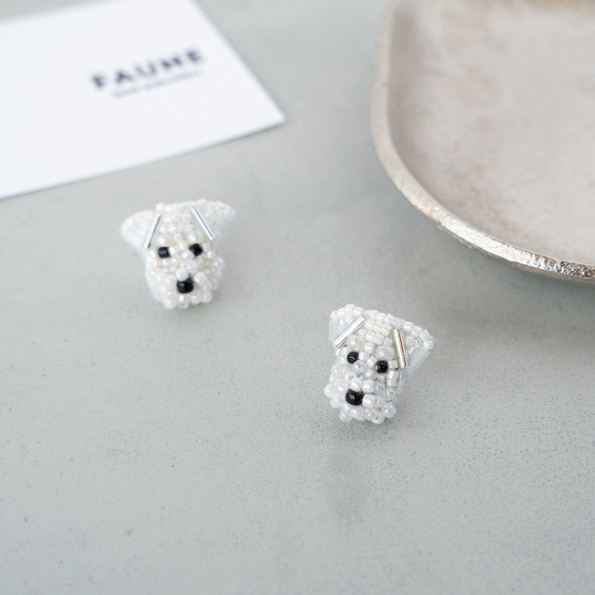 ミニチュアシュナウザー(ホワイト) ビーズ刺繡の耳飾り