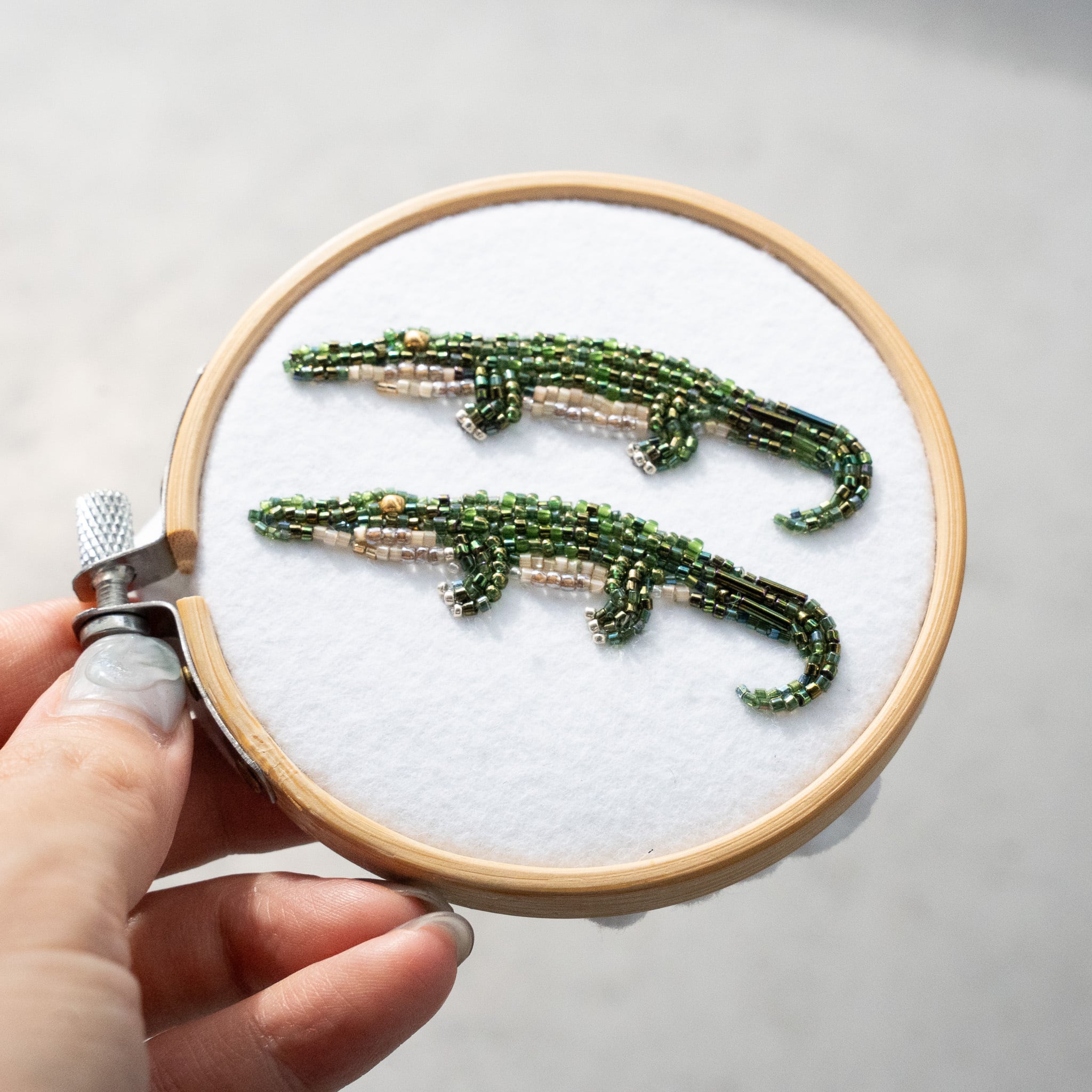 こちらはワニのビーズ刺繡ブローチ②です。