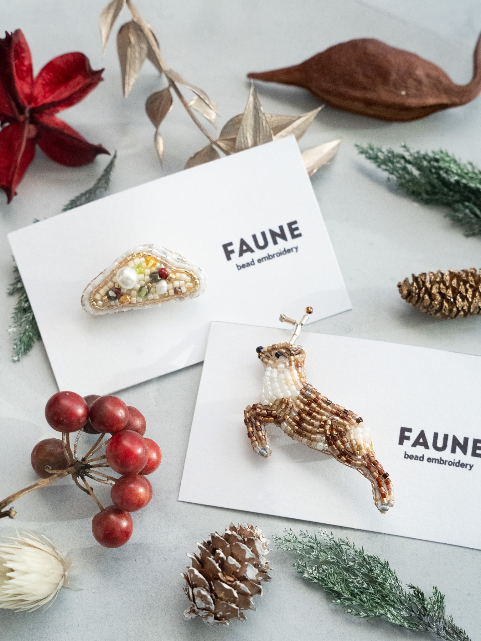 素材:ビーズ・刺繍糸・フェルト・合皮・金属(ブローチ)
