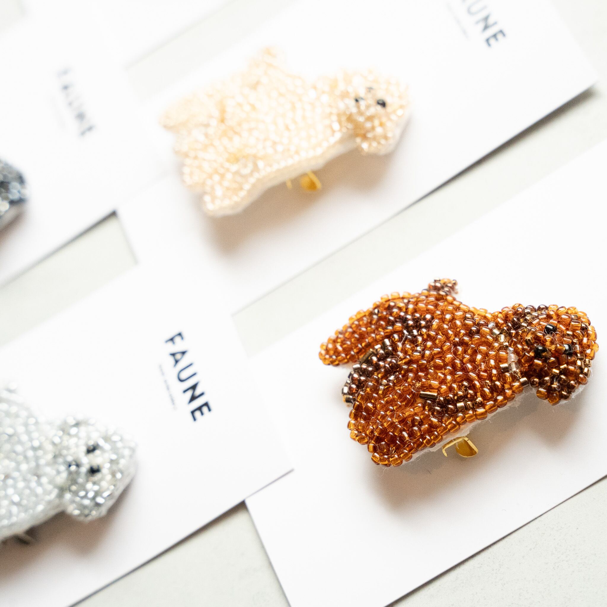 手作りの温かみがこもったブローチは、贈り物にも最適。